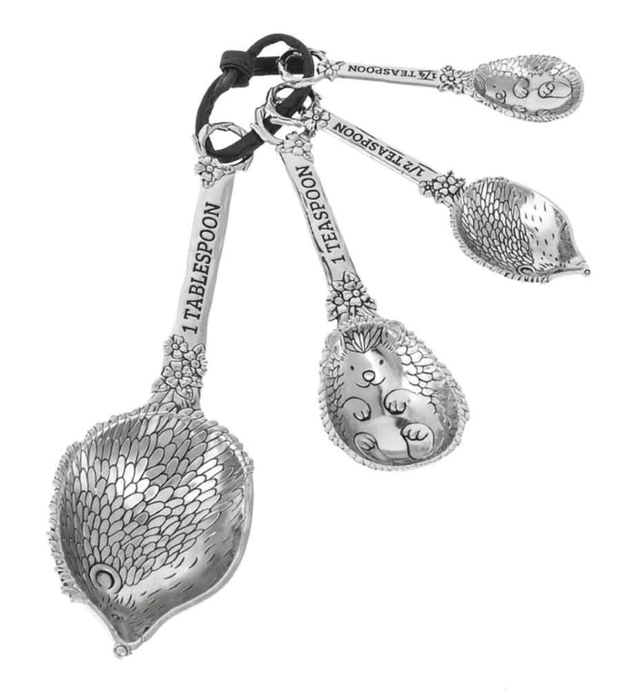 The Ganz measuring spoons in Hedgehogs 4 pack set in Silver.