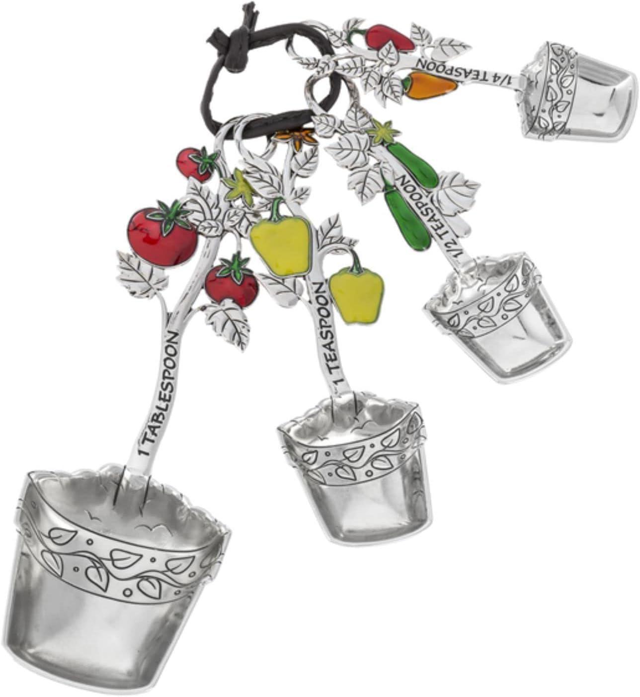 This is the perfect gift for almost any cook, bride, birthday, house warming or even for yourself! These spoons provide a unique combination of style and function. Each spoon has an exquisite detailed design on both the front and back and are manufactured from a sturdy zinc alloy, so you will have them for years to come. Each spoon handle is decorated with a themed, unique design. The spoon set includes: 1/4 teaspoon (3 inch), 1/2 teaspoon (3.25 inch), 1 teaspoon (4 inch), 1 tablespoon (5.25 inch). Dishwasher safe, hand wash recommended. Wonderful detail and accurate measurements and a splash of personality to any kitchen.
