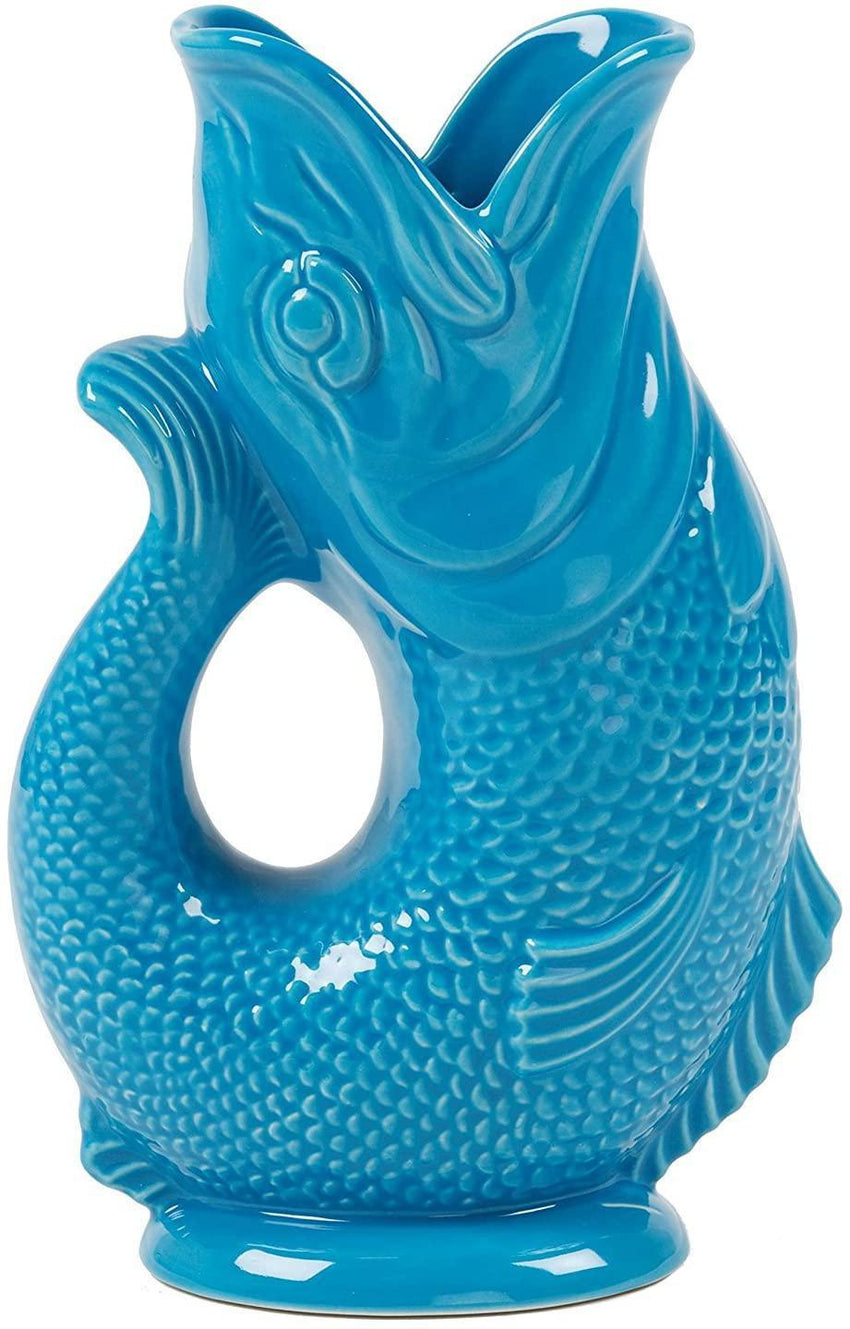 The original gluggle jug. Classic fish design created about 200 years ago. This jug is fully glazed inside and outside. Its a fully functioning water Jug. Each gluggle jug makes its own unique gluggle sound effects when pouring liquid.Product of United Kingdom