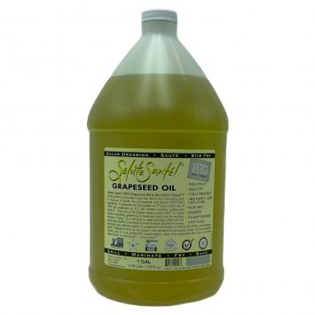 The oil is clear with a light, greenish hue and has a delicate, fruity flavor. It is cold-pressed from grape seeds and has a high smoke point, making it ideal for sautéing and frying. Grapeseed oil is also high in antioxidants and vitamin E.