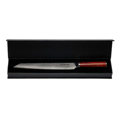 Our 10" Slicer knife is a masterful piece of craftsmanship, with a 67 layer AUS10 Damascus steel blade forged in Japan. It's great for slicing meat, fish, fruits and vegetables, and you can use it to create beautiful garnishes and presentations. The razor sharp blade will help you achieve a...