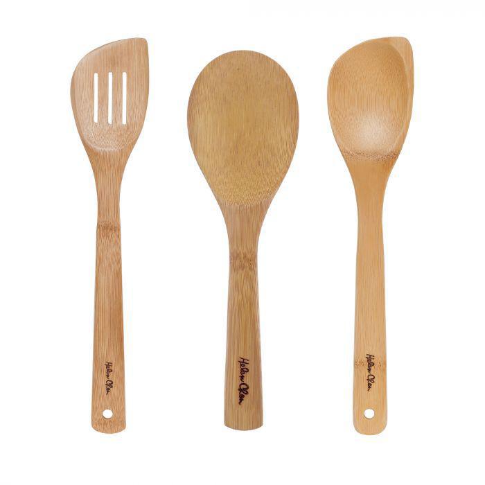 Helen's Asian Kitchen Natural Bamboo Kitchen Tools make cooking a breeze! Whether stirring, mixing, dividing, tasting, turning, stir frying, or draining foods, this 3-piece set tackles everyday cooking tasks, from food preparation to serving. These kitchen utensils whip up everything from a snack to an evening meal and holiday meals. They're lightweight, yet strong, and safe for use on nonstick cookware, making them the perfect cooking tools for everyone, even families with budding young chefs just learning to cook. They store away easily in a kitchen gadget drawer and look great in a utensil holder on the counter, always at the ready. Made from 100-percent natural bamboo, Helen Chen's kitchen tools are lightweight, strong, and less absorbent than wood. They are safe for use on nonstick cookware and metal pots and pans. Bamboo is a fast-growing, fully sustainable alternative to traditional materials for more sustainable living practices. Hand wash only. Occasionally coat with mineral oil to keep bamboo looking its best. Bamboo Tool Set includes 1 each 9-inch rice paddle, 12-inch corner spoon, 13-inch slotted stir fry spatula.