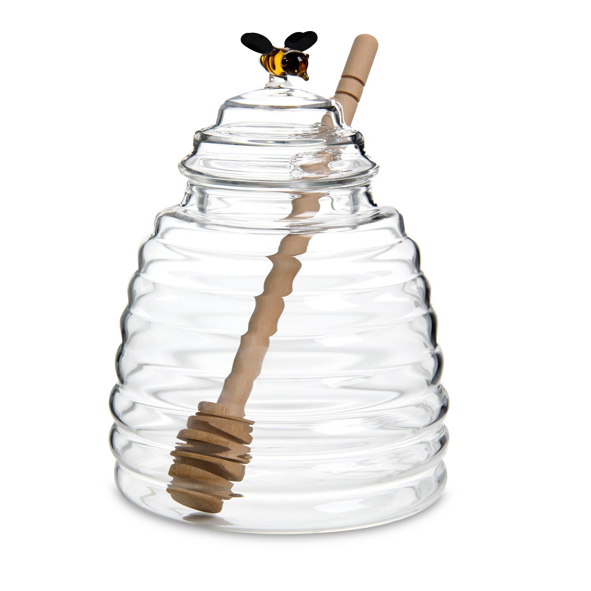 Glass Honey Jar with Dipper beautifully stores and serves honey and keeps fingers clean