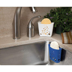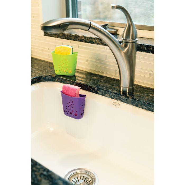 Keeps counter tops neat & tidy by providing a home for the sponge. Air holes aid in preventing mold by keeping air circulating. Sponge Station mounts to the sink or splash board with the attached suction cup. Or, it can stand on the counter top.