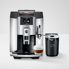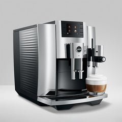 The latest generation of JURA’s most successful coffee machine model boasts a reinterpreted design and a range of benefits previously found only in the premium class. The Professional Aroma Grinder delivers flawless results, state-of-the-art brewing technologies allow coffee aromas to fully develop, and trend specialties are better than ever thanks to the airy, featherlight milk foam. The innovative E8 offers 17 different specialties from aromatic espresso to trendy cortado. It can also prepare long, mild specialties such as an Americano to professional barista standards, thanks to a new fluid system with a dedicated hot water spout. Those who like their coffee more intense can pep up their cappuccino, flat white, or latte macchiato using the exclusive Extra Shot function. The optimized fluid system even offers one-touch cleaning of the milk system - another E8 function that will be familiar from JURA’s premium products. What’s more, the new design is even more intuitive, for incredibly easy operation.