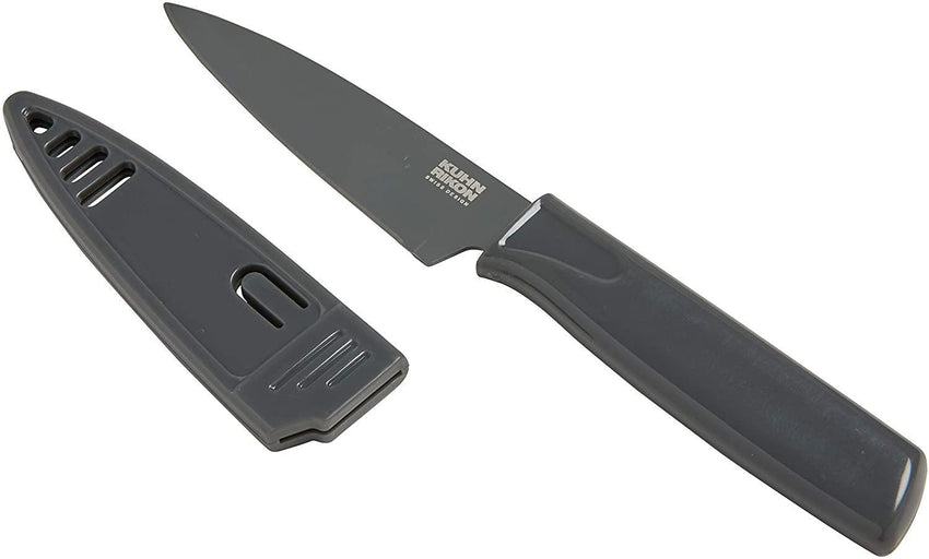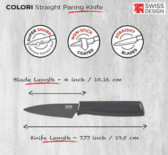 The versatile COLORI® Paring Knife, with secure-grip handle, is the handy all-purpose knife that can handle all your kitchen prep-tasks. Perfect for slicing cheese, peeling an apple, or chopping vegetables. The Japanese stainless steel blade ensures a sharp edge and long-lasting performance. The silicone-based nonstick coating prevents food from sticking to the blade, making each cut easier and neater. The matching safety sheath is great for safe storage, camping, picnics, and travel.