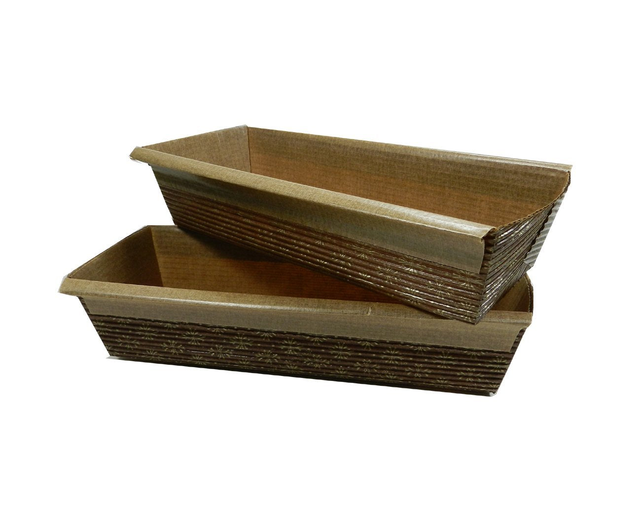 Stand alone, disposable, biodegradable half-pound loaf pans. Two italian loaf pans that measure 8" x 2.5". 1/2 lb. Constructed of pure cellulose fiber.