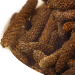 Also known as piper longum, Pippali, Pipal, Bengal Pepper, Indonesian Long Pepper, Lada Panjong, Thippili, Java pepper or Javanese pepper in various regions around the world. Long Pepper is native to India and Indonesia and ours is grown in Indonesia. The earliest Europeans to use pepper were the Greeks who called this spice peperi which originates from Sanskrit. When the empires of the Mediterranean transitioned from the Greeks to the Romans, the Roman’s became the region’s primary consumers of pepper . Roman cuisine was centered around Eastern spices with both regular black pepper and long pepper playing leading roles.