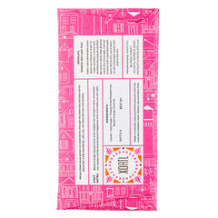 Blood orange infused olive oil & dried raspberries swirled in dark chocolate— the kind of sweet and fruity dark chocolate that will have you feeling nothing but love and happiness. Ingredients & Nutrition Organic Peruvian Cacao, Organic Cane Sugar, Blood-Orange Infused Olive Oil, Dried Raspberries Dairy-free, soy-free, and gluten-free. Contains raspberries....