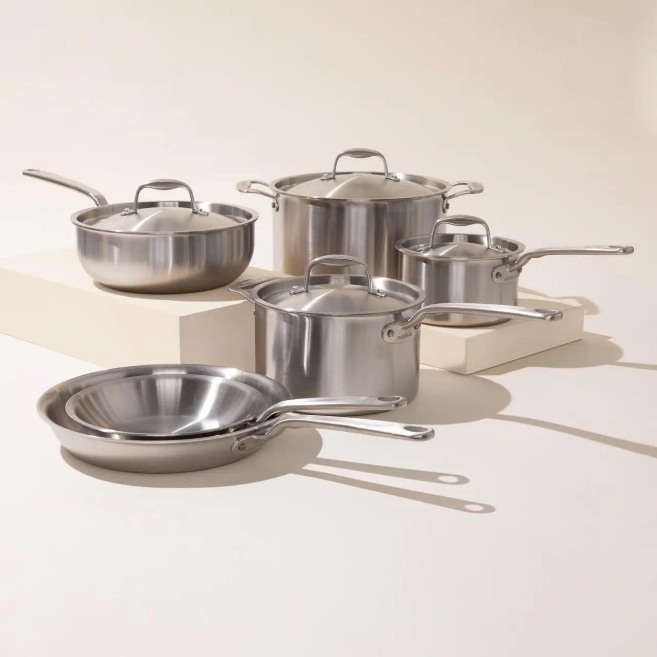 With a high-performing mix of Made In's best sellers, the 10-Piece Set is curated by chefs to bring you a much-needed cookware reset. This Set features a range of nearly indestructible Stainless Clad tools that will help you craft chef-quality meals, fill the gaps in your kitchen, breathe new life into your routine recipes, and inspire new favorites.