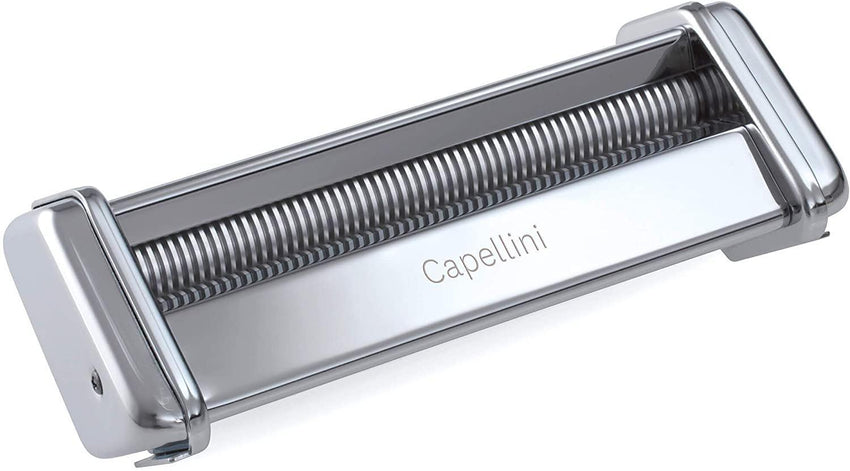 Marcato’s Capellini attachment for the Atlas 150 pasta machine forms and cuts long capellini noodles for making authentic Italian pasta at home. Nothing tastes better than fresh authentic homemade pasta and learning how to make fresh pasta couldn’t be easier! Pasta dough that’s rolled and cut evenly results in a more consistent texture, cook time and flavor. The capellini attachment easily connects to the Atlas pasta machine (sold separately), which rolls The homemade pasta dough to the desired thickness (setting 8-9 recommended), then passes it to be formed and cut into capellini noodles by the pasta attachment. Fresh pasta can be dried on a pasta drying Rack (Sold Separately) and stored for later use, or cooked and enjoyed immediately. Made in Italy from chrome-plated steel with anodized aluminum rollers. Special removable rods with plastic cleaning combs make cleaning easier. Wipe clean or use a stiff brush after each use. Includes the capellini attachment pasta cutter and a 10-year manufacturer's warranty.