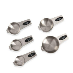 Mrs. Anderson's Magnetic Measuring Cups portion out dry and liquid ingredients for accurate cooking and baking. Made from one-piece brushed 18/8 stainless steel without welds; includes standard 1/8, 1/4, 1/3, 1/2, and 1-cup kitchen measurements. Find and use the size needed without opening or closing a connecting ring; easy-read plastic markers with U.S. and metric equivalents won't wear off. Strong magnets stack and nest the cups tightly for easy storage; space-saving handle design.