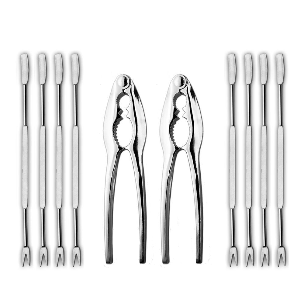 Nantucket Seafood Toolset. A must-have for seafood lovers, this 8-pc. seafood set contains the utensils you need when dining on your next meal of crab legs! The set includes 6 scoops/picks and 2 shellfish crackers, which feature two different sized crushing areas. These high quality utensils are made of durable stainless steel for long-lasting use. When not dining on seafood, use the shellfish crackers to crack open your favorite nuts! Leave no crab behind and get the most out of your next shellfish meal with this seafood tool set!