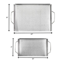 Set includes one large ( 11" X 17") and one small (11" X 7") grill grid. 100% food grade stainless steel.