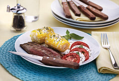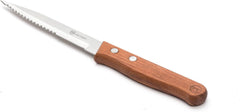 The accustomed griller will be primed to enjoy their grilled feast with these traditional and dependable steak knives. The classic, serrated edge blades are constructed of sturdy stainless steel, and the fine, solid rosewood handles provide a comfortable grip. Apart of an extended family of tools, these classic steak knives are down to earth and project attractive aesthetic features.
