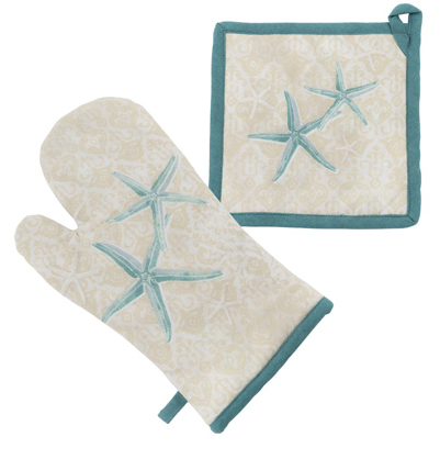 Oven Mitt And Pot Holder Set Laguna Shells