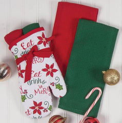 Three piece set made of 100% cotton. Hand towel measures 16" by 26". Machine wash cold.