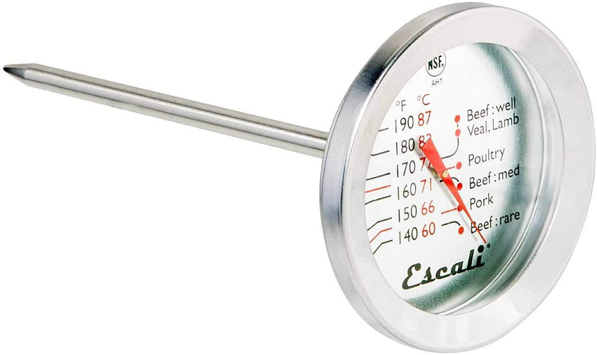 The Escali Oven Safe Meat Thermometer features target cooking temperatures printed on an easy to read dial display for quick reference. It has a durable stainless steel design which is NSF certified, oven safe and dishwasher safe.