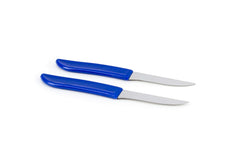 A great paring knife will make slicing your fruits, vegetables, and other foods much easier. This set includes 2 paring knives with sharp stainless steel blades and comfortable plastic handles. These knives feature a short blade for maximum accuracy, precision, and control to cut, slice or peel foods with ease. Paring knives are a great multi-use item to have in every kitchen. 5.75" Paring Knives. Set of 2