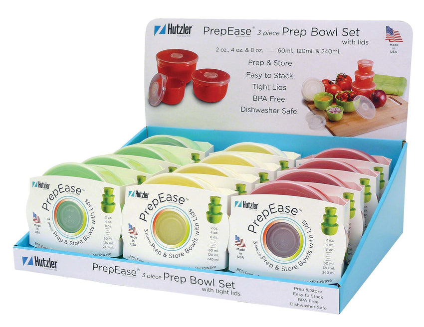 Prep, store and seal ingredients, leftovers, snacks and more with these BPA free nesting bowls with matching lids. Dishwasher safe. Bowls nest together for compact storage. Measurements are embossed on each bowl for easy identification.Set includes 2 oz, 4 oz and 8 oz bowls.