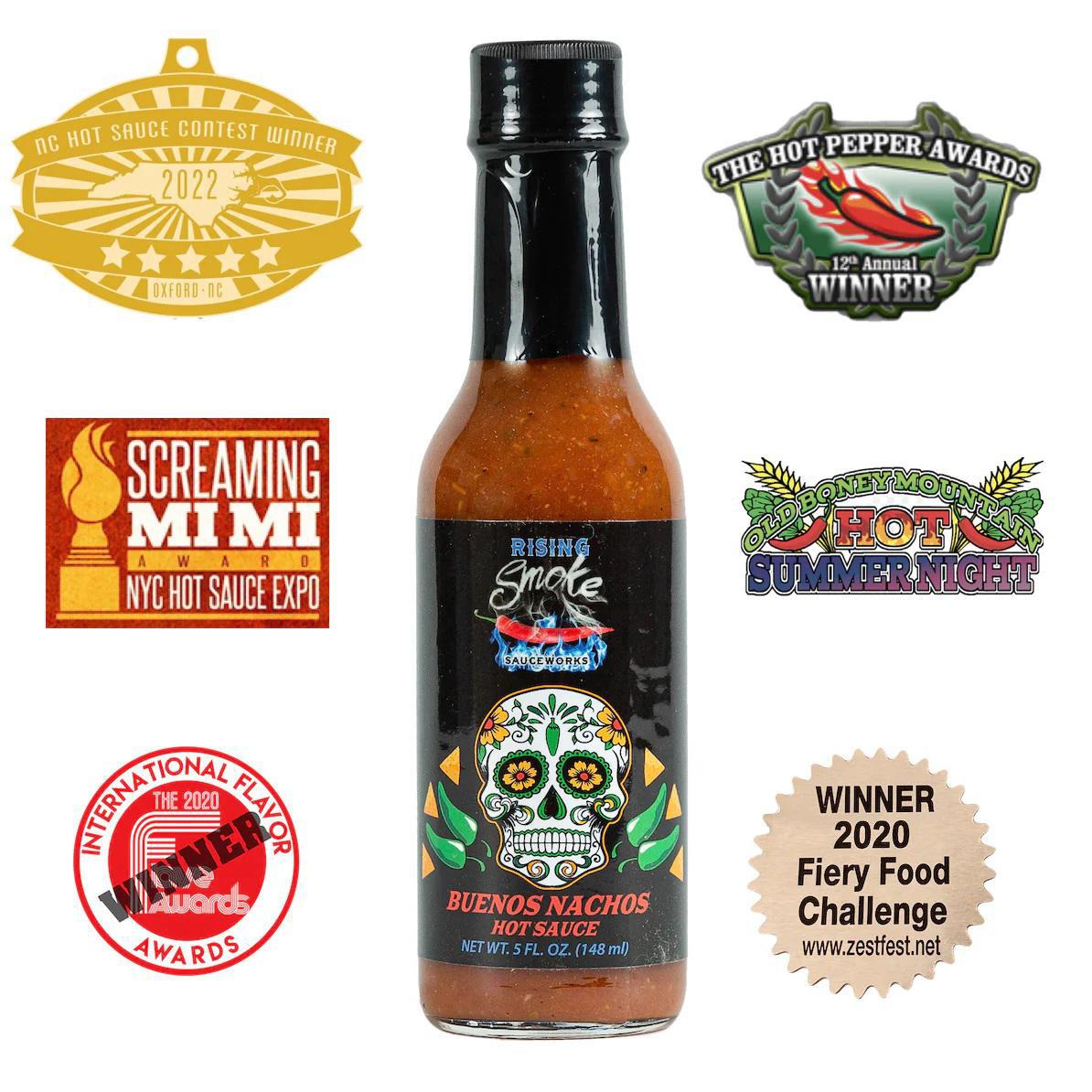 Buenos Nachos is Rising Smoke's friendliest sauce, meant for everyone! Crafted with fire-roasted jalapeños, smoky chipotle peppers, cumin, and roasted red peppers, it delivers a delicious twist on traditional taco sauce. Say goodbye to artificial taco seasonings and embrace the all-natural goodness of our sauce. Just mix it with your...