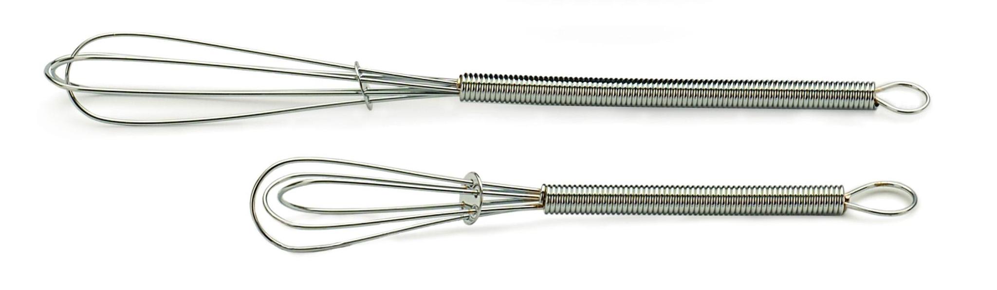 These dishwasher safe 18/8 stainless steel whisks are ideal when a quick whip of dressing or sauce is needed. Set includes one 5" and one 7" length whisk.