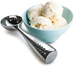 This vintage ice cream/cookie dough scoop is constructed of chrome plated die-cast zinc alloy. Dishwasher safe.Measures 8.75" long x 2.25" wide.