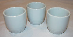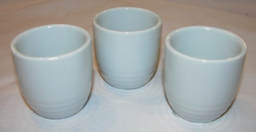 2-ounce porcelain sake cup. 2" tall, White, Subtle ridges around base of cup. Dishwasher safe.