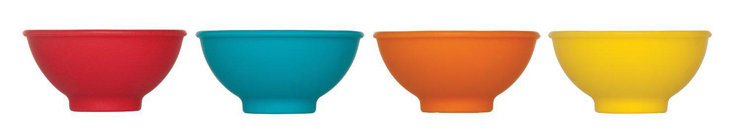 Colorful silicone bowls, heat resistant to 500 degrees F. Great for having spices at hand during cooking and for serving condiments or dipping sauces. Oven, microwave, and dishwasher safe.