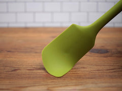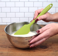 Mix, stir, or scrape. You can do it all with this spatula. Colorful silicone surrounds a sturdy metal core that enables this 11-inch spatula to mix or stir thick batters (like cookie dough), yet be flexible enough for scraping. Heat resistant to 425 degrees Fahrenheit, 220 degrees Celsius. Measures inches by 2-1/2-inches by 1-inch. Dishwasher safe for quick and easy clean up.