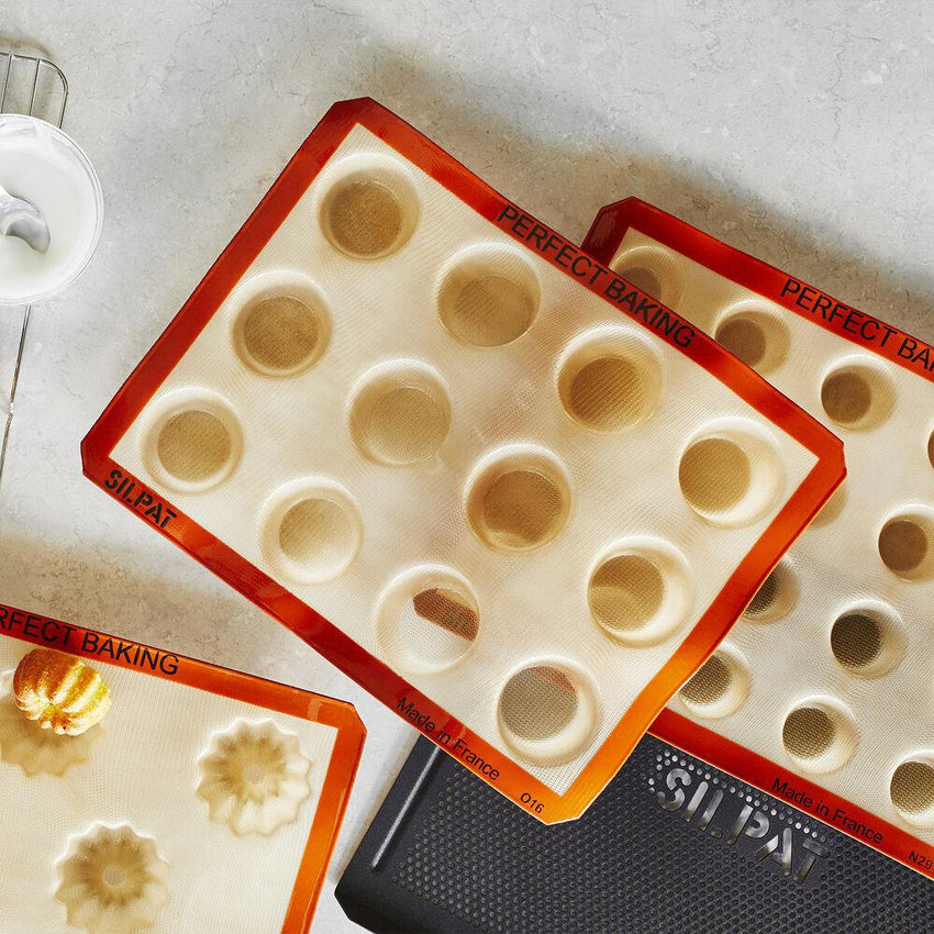 Silpat™ baking molds are perfect for baking just about any delicacy you want. The baking molds are made of non-stick silicone which means you’ll spend less time cleaning and more time enjoying your baking creations. Silpat™ replaces the need for butter, grease, oils, and sprays. A 12 hole mold. Can be used in the freezer, refrigerator, oven and microwave.