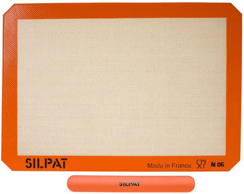 This 11.6 x 16.5-inch half-sheet size baking mat will turn your pan into a non-stick surface. The Silband accessory allows you to roll one, or multiple, mats together and slap the band on to keep them together and then store neatly within a 3" space in your drawer, cupboard, cabinet, etc. Silpat is especially great for working with sticky materials such as gooey dough, taffy, caramel, or anything your imagination allows. Nothing sticks to Silpat, so it will save you a lot of time cleaning as there is no more sticky mess on your pans! Silpat never needs greasing, which saves both time and money, and creates less waste for our environment. Use Silpat instead for any baking recipe that calls for parchment paper. It is ideal for use when creating Danish pastries, baking biscuits, working with sugar and all sugary and salted preparations. Silpat mats are made of fiberglass and food grade silicone and are completely food safe, and can be used thousands of times. Life of product varies, lasts 2,000 to 3,000 uses depending on use and care. Can be used at temperatures varying from -40 degrees C to 250 degrees C (-40 degrees F to 500 degrees F). Do not cut the Silpat. Nothing sticks to Silpat!
