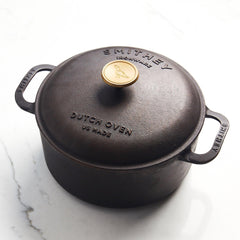 Honoring the best of vintage American dutch oven design. This 5.5 quart dutch oven is a beatiful and functional kitchen workhorse that is destined to be a modern heirloom. Featuring Smithey's signature polished interior surface that is naturally non-stick and easy to clean. This dutch oven combines the best of enameld cast iron heat performance with a surface finish that will never crack or chip. In fact, the interior surface will only get better with use. Engineered to maintain even, consistent heat, this dutch oven is perfect for everything from slow cooking to frying, roasting to baking.