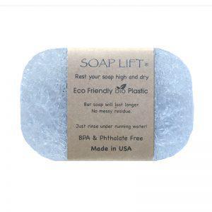 Soap Lift is made of a multi-directional material that allows water to drain and air to circulate, keeping bar soaps out of the muck! Can be used in soap dishes, on shower shelves, or on countertops.. Cleans remarkably easily by simply holding it under running water and giving it a few squeezes. Approx. size: 2.75` x 4.25`. Can be trimmed to fit soap dishes, if necessary.
