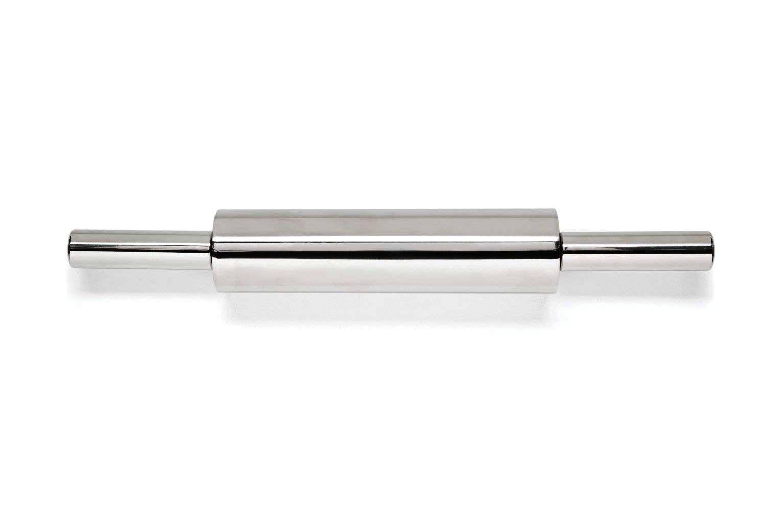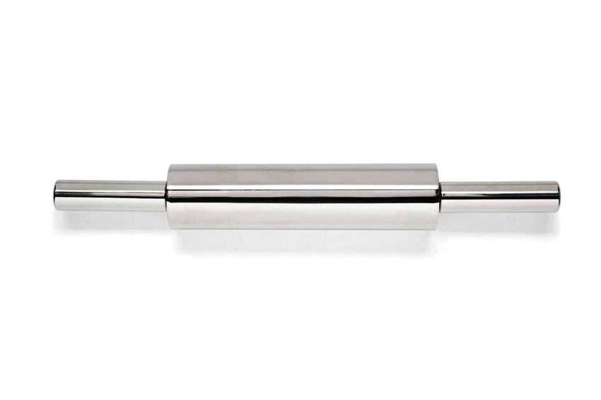 Enjoy baking cookies or rolling out your own pizza dough with the family? Then bring some ease to your baking with this Stainless-Steel Rolling Pin! The rolling pin is 18.5" long, has nylon ball bearings for a smooth rolling. Even the toughest doughs are flattened easily and effortlessly. Let the smoothness and heft of this rolling pin do the hard work for you!