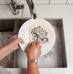 To clean, toss in the washing machine or place on the top rack of the dishwasher. Lay flat to dry. When your Swedish sponge cloth has reached the end of its lifecycle (9 months or even more!), toss in the compost.