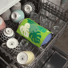 To clean, toss in the washing machine or place on the top rack of the dishwasher. Lay flat to dry. When your Swedish sponge cloth has reached the end of its lifecycle (9 months or even more!), toss in the compost.