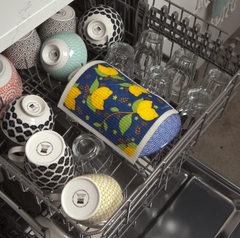 To clean, toss in the washing machine or place on the top rack of the dishwasher. Lay flat to dry. When your Swedish sponge cloth has reached the end of its lifecycle (9 months or even more!), toss in the compost.