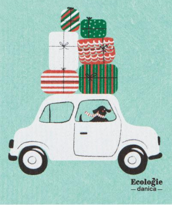 Relish in the good tidings brought by an adorable pooch on this Swedish Winter Wheels Dog dishcloth by Ecologie. From wiping counters and dusting off surfaces to spotless cleaning of mirror and windows, this festive design delivers holiday smiles.