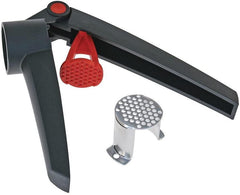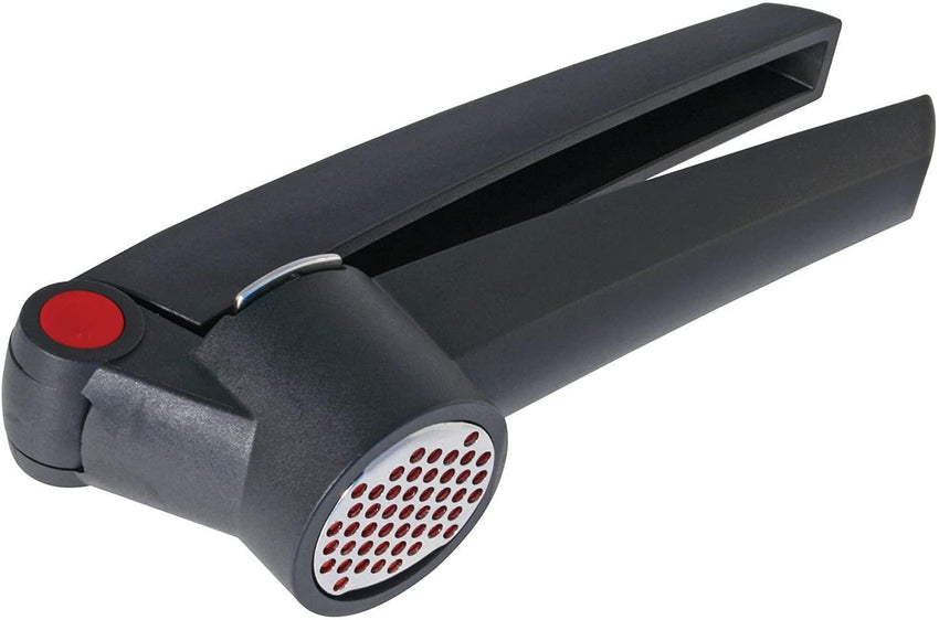 The design of the stainless steel grate maximizes output of each garlic clove. Plunger crushes garlic with a simple squeeze. Constructed from lightweight material that obsorbs the pressure of every squeeze. Removeable steel grate for easy cleaning. Dishwasher safe.Made in Switzerland