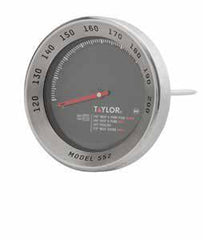 Professional grade, leave in meat thermometer, with tempered glass lens. Safe to leave in oven or grills. Printed temperature scale on the top of the bezel and USDA temperature reference on the dial.