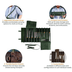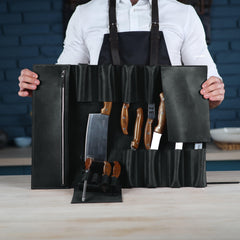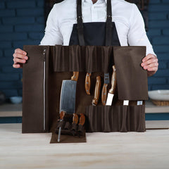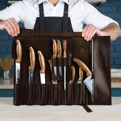 The Pikore Leather Knife Roll is a must-have accessory for professional chefs, culinary students, and cooking enthusiasts. Crafted from high-quality genuine leather, this knife roll offers a stylish and practical solution for storing and transporting your essential kitchen tools.