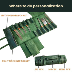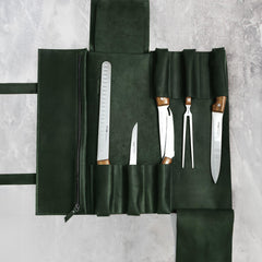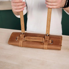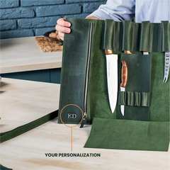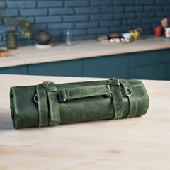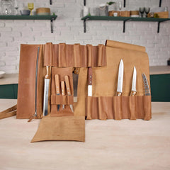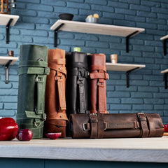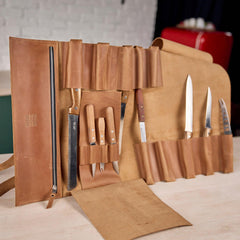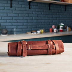 The Pikore Leather Knife Roll is crafted from genuine leather, ensuring long-lasting durability and style. With proper care, this knife roll will be your trusted companion for years to come. No special care is required, simply wipe clean with a damp cloth when needed.