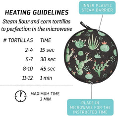 Taco night is a success when your tortilla stays in tact! Use this specially designed, cotton tortilla warmer to heat corn or flour tortillas on-demand in your microwave. Warming increases flexibility and helps prevent cracking when folding.