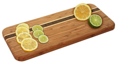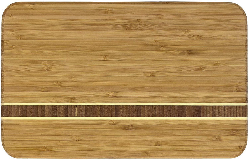 The Totally Bamboo Aruba Bamboo Serving and Cutting Board is a beautiful option to both cut and serve. The Aruba is part of Totally Bamboo's Caribbean Collection, one of the first lines of bamboo cutting boards on the market! The entire collection features a gorgeous inlay of dark end-grain bamboo flanked by strips of natural bamboo. This inlay strip blends wonderfully with the vertical-grain bamboo construction of the board. The Aruba is sized perfectly for everyday use in the kitchen. When the meal is done, the board cleans easily with hand washing; do not soak or wash in the dishwasher. The board measures 12-1/2 inches by 8 inches and is 3/4 of an inch thick.