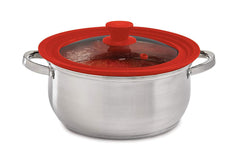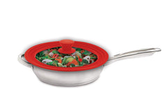 The World’s Greatest Universal Pot Lid That Also Goes In The Microwave helps keep cooking surfaces cleaner and saves time. Spend less time digging for the right-sized lid! Specially designed from tempered glass and silicone, it’s perfect for stovetop and oven use. Plus, with no metal parts, it’s the perfect splatter guard for covering microwave cookware and bowls to minimize mess during reheats and microwave cooking. It fits multiple-sized pots and pans, between fits 8.5 to 11.5-inches in diameter, and is heat safe for oven use (to 350-degrees Fahrenheit). Easily monitor foods through the clear glass while they cook and lock precious heat inside for faster cooking times. The built-in vent releases steam, so foods brown perfectly without condensation buildup, and prevents starchy foods, like potatoes and pasta, from boiling over. This clever addition to cooking tools and kitchen gadgets takes the place of multiple lids to help save precious storage space. The fully sealed design prevents liquids from seeping between the glass and silicone or into the comfort-grip knob. Made from tempered glass and heat-safe silicone (to 350-degrees Fahrenheit), The World’s Greatest Universal Lid is FDA-approved, BPA free, and safe for oven, stovetop, and microwave use. Do not allow direct contact with flame. Do not use in the broiler or on the grill. Dishwasher safe for easy cleanup.