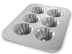 The USA Pan 6 well Swirl Cupcake Pan measures a full 3.688 x 2.5 x 1.781 inches in each cup. This pan provides home bakers with an easy way to bake elegant swirl cupcakes for parties, events, and family functions. A simple twist on a baking classic, the swirl cupcake is perfectly finished with a variety of glazes such as a rich chocolate glaze or simple confectioners’ sugar glaze. The pan surface is coated with a patented AMERICOAT Plus coating; a non-stick silicone, allowing you to easily release your baked goods from the pan. AMERICOAT Plus is PTFE, PFOA and BPA free. Every USA Pan is made in the USA and has been designed with the same standard high performance features that commercial bakers enjoy including aluminized steel and heavy gauge steel construction that allows for even heat distribution and maximum service life. USA Pan 6 well Swirl Cupcake Pan’s unique fluted panel surface design facilitates air circulation and also maximizes pan strength, which helps to resist warping. USA Pan bakeware is long-lasting, durable, reliable. USA Pan’s professional grade bakeware helps everyday home bakers produce professional grade baked goods. USA Pan is a Bundy Family owned company, based in Pennsylvania that has been producing high performance bakeware for over 50 years.