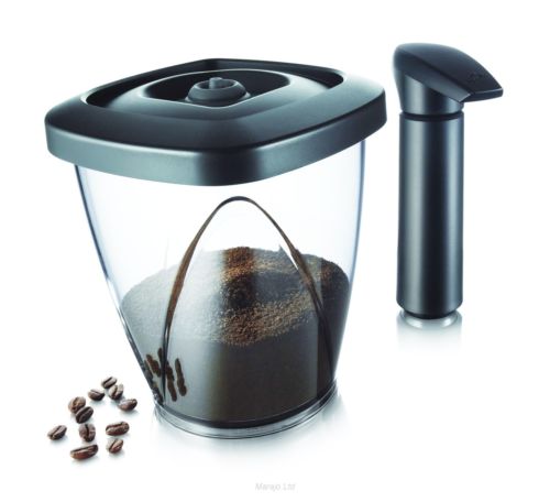 Once exposed to the air, ground coffee quickly loses its flavour and aroma. The vacuum pump simply extracts the air from the Vacuum Coffee Saver creating a vacuum, so that flavour and aroma of the coffee will be kept in perfect condition. Stores up to 1.1 pounds. Dishwasher safe. Suitable for air sensitive foods, such as biscuits, nuts, cereals, coffee, or tea.