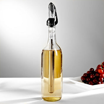 Whether you're craving a crisp glass of Pinot Grigio or cellar temperature Cabernet, this two-in-one pourer and chiller makes serving wine at its ideal temperature clever, classy, and undeniably cool. At least two hours before serving, place your VinOice in the freezer and your wine in the refrigerator or on ice. When it's show time, pour yourself the first chilled glass and simply place the frozen stainless steel rod into the bottle. The sleek hinged cap opens with gravity as you tilt the bottle, allowing you to pour a perfectly prepped glass of wine without unsightly drips or dribbles down the bottle's side. From the time you pop the cork (using a Legacy Cork Pop of course!) until the party winds down, this ingenious device will maintain your red or white vino's optimal sipping temperature, enhancing its fragrance and flavor down to the last drop.