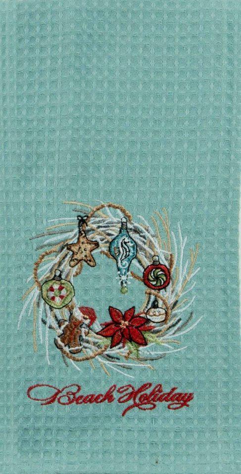 Perfect for your coastal kitchen, this seaglass colored waffle towel is printed with beautiful embroidery of a coastal wreath, a convenient loop for hanging, and thick waffle weave. The waffle weave makes this towel absorbent, and the embroidery makes it a personal statement for your kitchen, or a meaningful gift!...